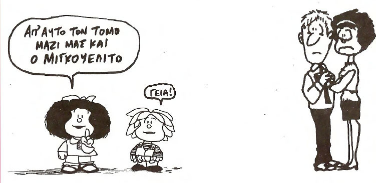 Στον τρίτο τόμο της σειράς, η Μαφάλντα είναι σε διακοπές στη θάλασσα με τους γονείς της. Εκεί θα γνωρίσει το Μιγκουελίτο, και θα γίνουν φίλοι. Κι αφού ο Μιγκουελίτο μένει κοντά της και στην πόλη, θα συνεχίσουν να κάνουν παρέα και το χειμώνα, και θα ενταχθεί στη γνωστή συντροφιά με τη Σουζανίτα, το Φελίπε και το Μανολίτο. Όλοι μαζί λοιπόν, υποδέχονται με ενθουσιασμό αλλά και ανησυχία την πρώτη τους χρονιά στο σχολείο, με τις ασκήσεις των μαθηματικών και της ορθογραφίας να μπαίνουν στις καθημερινές τους συζητήσεις. Η Σουζανίτα και ο Μανολίτο είναι τσακωμένοι και οι υπόλοιποι προσπαθούν να τους συμφιλιώσουν, ο Φελίπε παθιάζεται με τους καουμπόηδες και το Μοναχικό Καβαλάρη, και όπως συνήθως η διεθνής πολιτική και η σούπα είναι μερικά απο τα καυτά θέματα που απασχολούν τους μικρούς μας ήρωες.